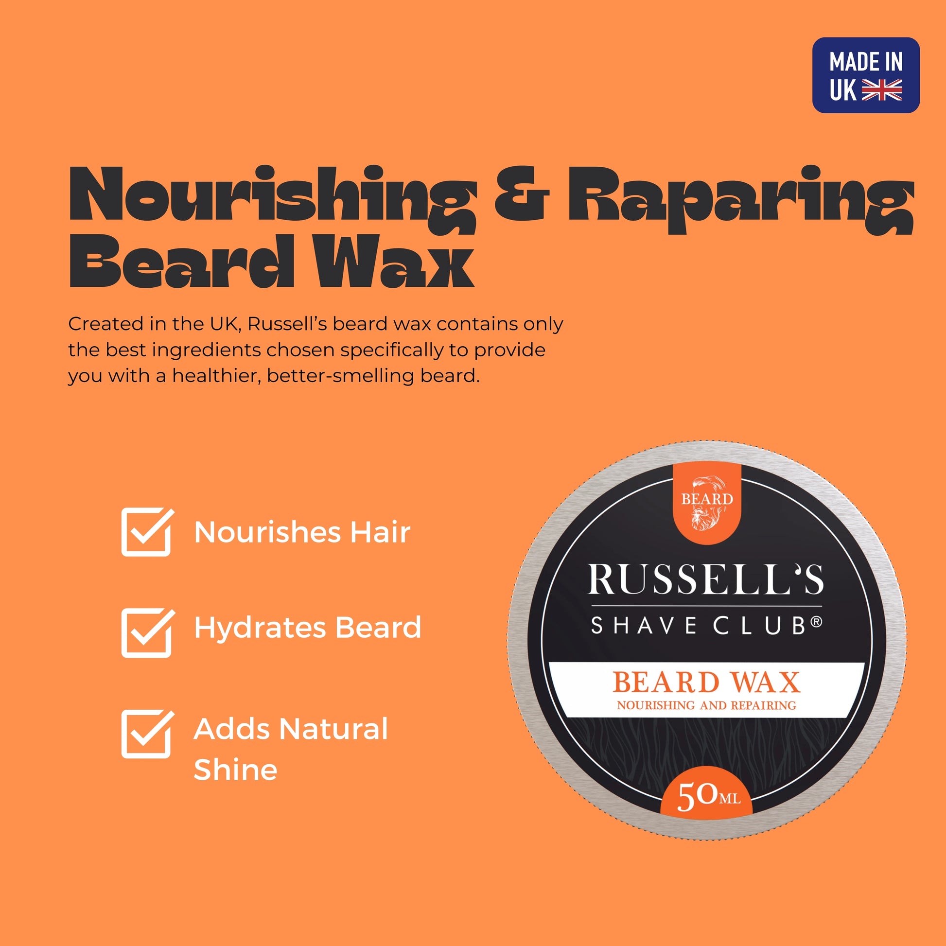 Discover the Essence of Elegance with Russell's Shave Club Elite Beard Wax. Elevate your beard into a statement of sophistication.