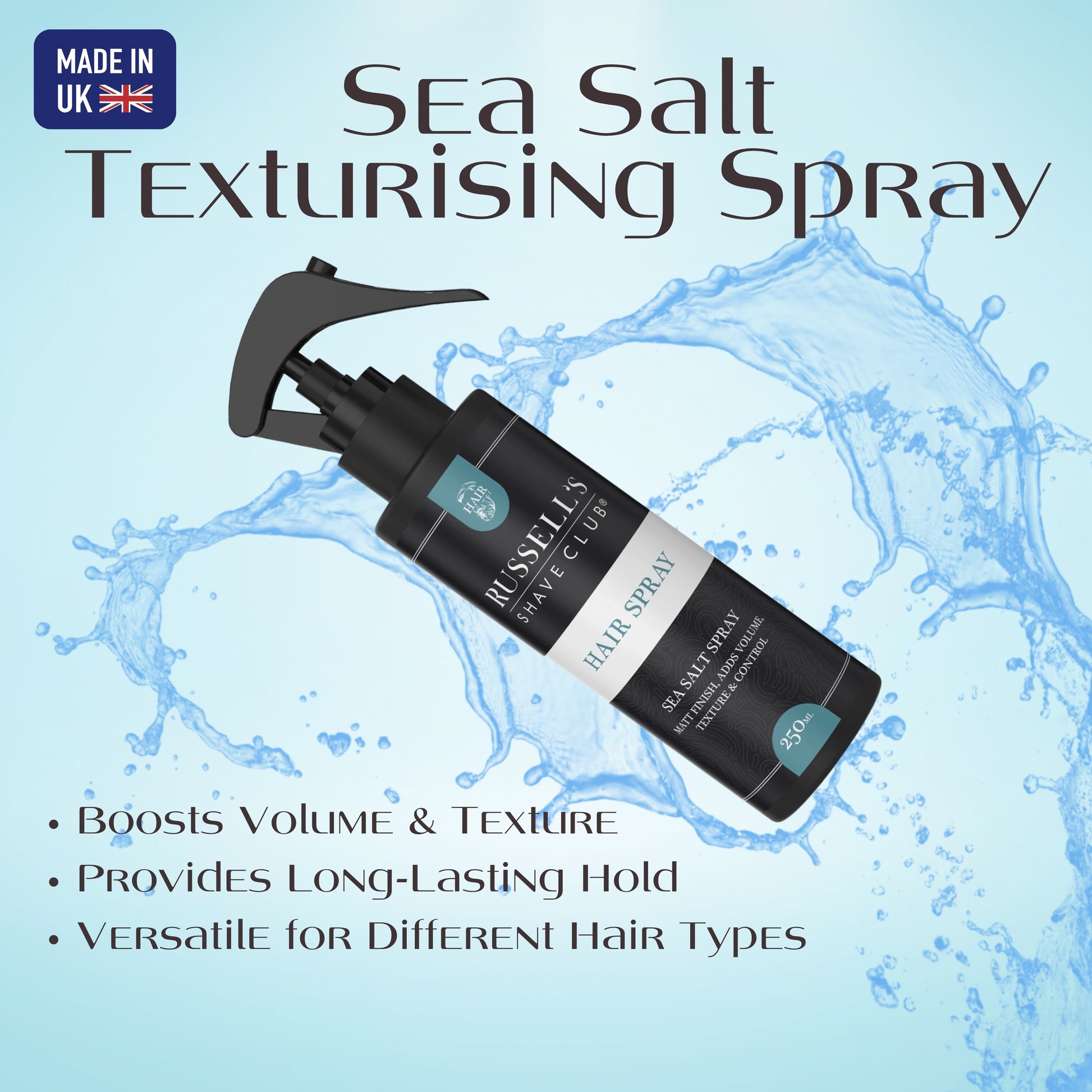 About This Product: Russell’s sea salt spray is paraben and sulphate free. Great for achieving a beach haired look without damaging your hair.
