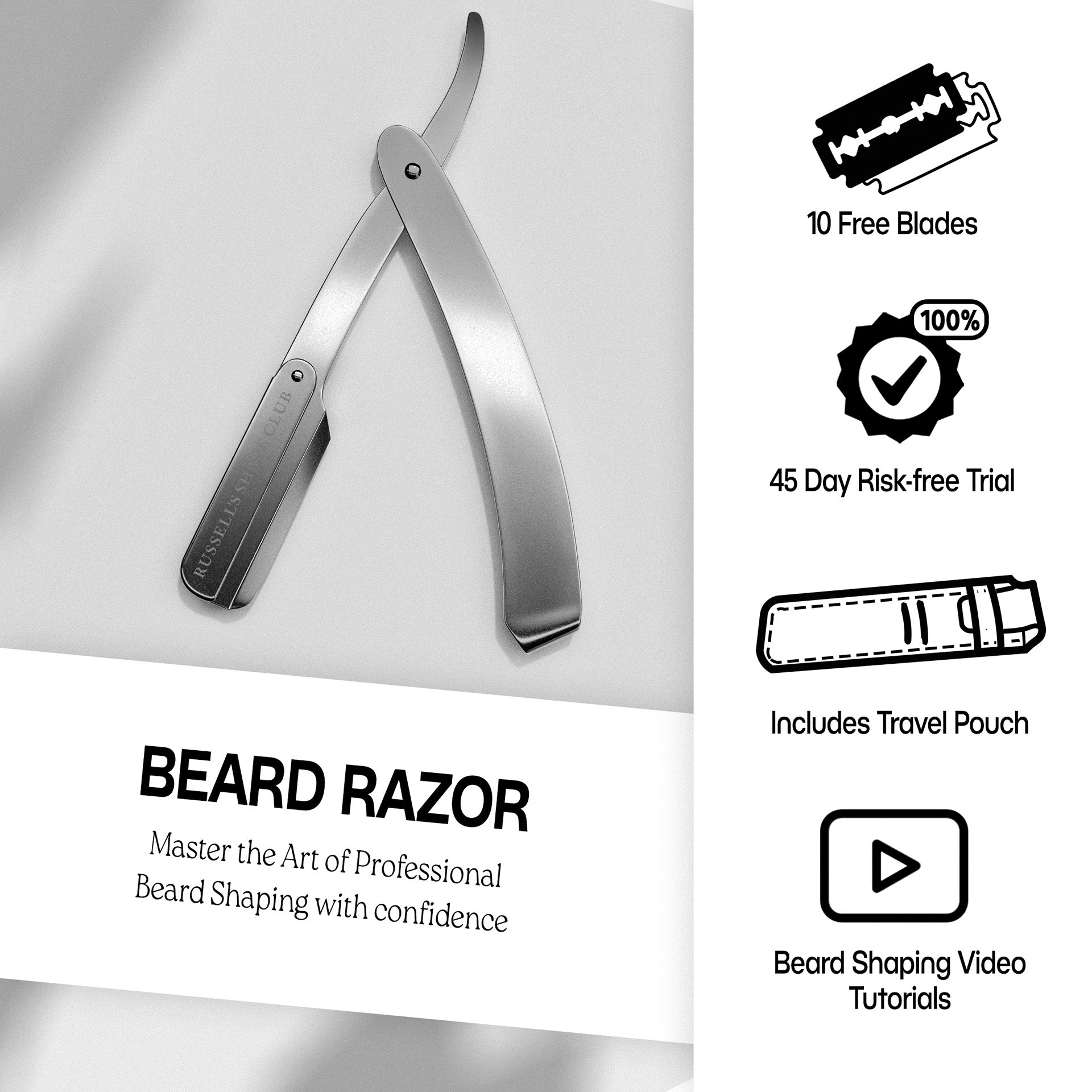 Russell’s Shave Club presents the gentleman's tool: A premium quality cut-throat razor perfect for shaping up your beard from the comfort of your home.