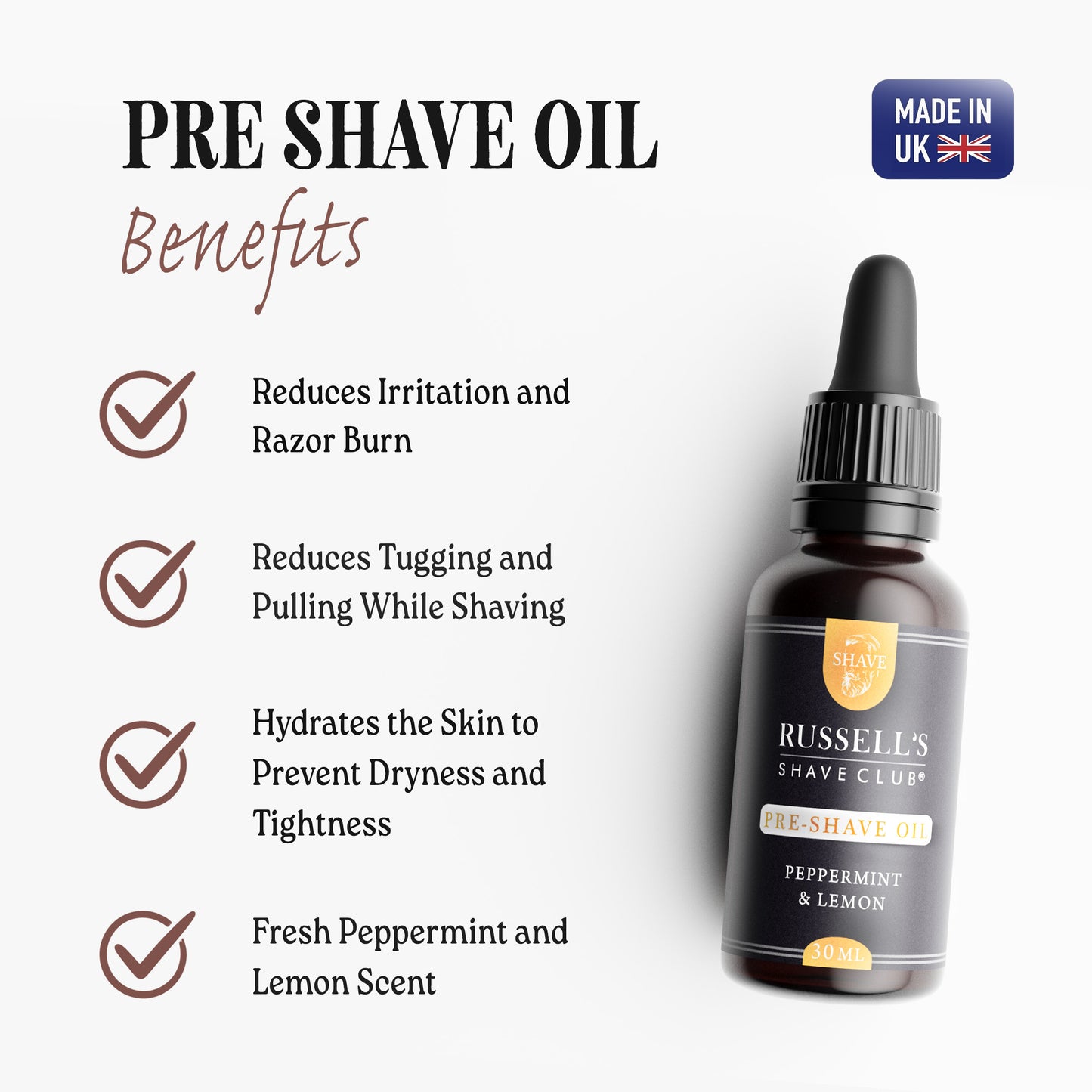 • Pre-Shave Oil (30ml): Peppermint and lemon, softens the beard, preparing skin for shaving.